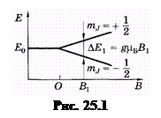 Расщепление энергетических уровней приводит и к расщеплению спектральных линий атомов, помещенных в магнитное поле. Это явление называют эффектом Зеемана. Запишем выражение (25.2) для двух подуровней Е 1 и Е 2, образованных при наложении магнитного поля: