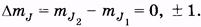Согласно правилам отбора для магнитного квантового числа, имеем