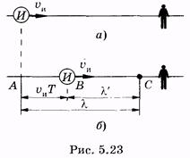 Как видно из (5.60), при сближении источника волн и наблюдателя воспринимается частота больше испускаемой. Изменив знаки у uн и uи в (5.60), можно получить аналогичную формулу при удалении источника от наблюдателя (приемника). Таким образом, можно записать общую формулу