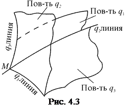 Вернёмся к произвольной системе координат (Оq 1, Оq 2, Оq 3). Будем считать, что не только каждой точке пространства отвечает определённая тройка чисел (q 1, q 2, q 3), но и обратно, каждой тройке чисел отвечает определённая точка пространства. Введём понятие координатных поверхностей и координатных линий.