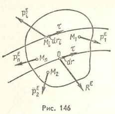 Поэтому следует вычислить лишь работу внешних сил, приложенных к телу. Положим, что к твердому телу, движущемуся поступательно, приложены внешние силы При поступательном движении твердого тела траектории всех его точек тождественны и параллельны. Следовательно, векторы элементарных перемещений всех точек геометрически равны между собой, т. е. Элементарная работа силы Элементарная работа всех сил, приложенных к телу, равна элементарной работе внешних сил где Выражение (65.3) показывает, что элементарная работа сил, приложенных к твердому телу, движущемуся поступательно, равна элементарной работе главного вектора внешних сил, приложенного в любой точке тела. Работа на конечном перемещении
