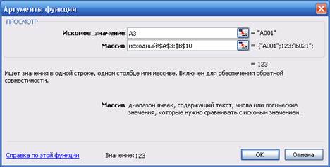 В первом случае поиск искомого значения осуществляется в векторе просмотра (столбце) и, когда происходит совпадение значений, функция возвращает соответствующее значение из вектора результата.