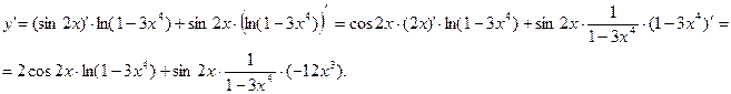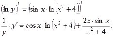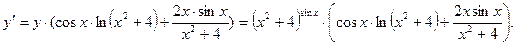 Замечание. Для отыскания производных некоторых функций можно воспользоваться методом логарифмического дифференцирования. Коротко суть его состоит в том, что заданную функцию, прежде всего, логарифмируют, после чего приравнивают результаты дифференцирования обеих частей полученного равенства и выражают искомую функцию. Пример. Найти производную функции Решение. Логарифмируя данную функцию, получаем равенство
