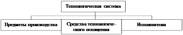 Технологическая система является частью производственной системы и представляет собой совокупность функционально взаимосвязанных средств технологического оснащения (СТО), предметов производства и исполнителей для выполнения в регламентированных условиях производства заданных технологических процессов или операций (рисунок 2.1).
