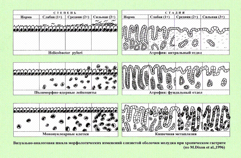 Визуально-аналоговая шкала морфологических изменений СОЖ при ХГ (M. Dixon et al., 1996)