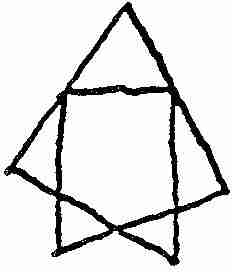 Рис. 1. Соломонова печать. То, о чем я рассказал, показывает, как трудно перевести язык символов на наш язык, как мало смысла в интерпретации символа человеку, который не достиг его понимания. И как бы ни странно это было, остается фактом, что смысл символа, раскрытие его сущности, может быть дано, и быть принято, тем кто ранее уже знал, и для него символ будет синтезом его знаний, той же формулой для выражения знания, какой он был для того, кто создал символ. Тогда человек, незнакомый с этой системой символов, многое поймет, если ему скажут, что знание единства в терминах самопознания и самосовершенствования для человека заключается в нейтрализации двоичности троичностью и трансмутация ее в четверичность для того, чтобы закрыть пентаграмму и сделать проявленной «Соломонову печать», что я мог бы изобразить так:
