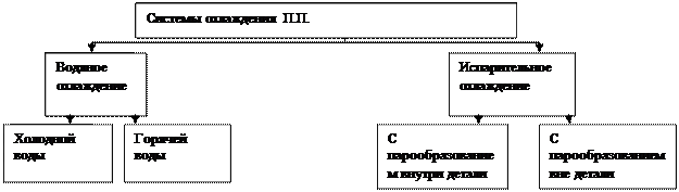 Классификация систем охлаждения и их сущность Назначение систем охлаждения п.п. охлаждение необходимо: 1. Для соблюдения необходимого температурного режима в процессе производства продукции 2. Для отвода тепла от стенок деталей, поддерживая их температуру в пределах, обеспечивающих сохранение прочности деталей В первом случае вода играет основную роль. Во втором случае основную роль играет соблюдение правил работы, предупреждение аварий.