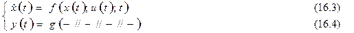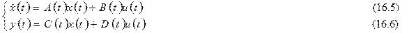 называются уравнениями в форме переменных состояния. Причем дифференциальные уравнения (16.1) называются уравнениями состояния, а алгебраические уравнения (16.2) – уравнения выхода.