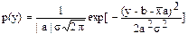 Если связь между значениями Х и Y неоднозначна, как, например, на рис. 8.3.4, и значению у может соответствовать несколько значений х, то вероятность попадания случайной величины у в интервал dy будет складываться из суммы вероятностей несовместных событий px(x1)dx1 + px(x2)dx2 +..., откуда следует: py(y) = Пример. Связь случайных величин Х и Y задана выражением Y = aX+b. Плотность вероятностей величины Х соответствует распределению Гаусса: