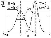 Пример двух распределений Гаусса при разных средних значениях и дисперсиях приведен на рис. 8.3.10. Плотность вероятностей случайной гауссовской величины имеет только один максимум, который соответствует x = xmax @