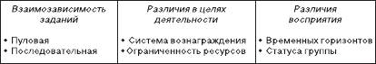 Рис. 5.7.1. Причины межгрупповых конфликтов Зависимость групп может быть последовательной или пуловой, что по-разному влияет на возникновение конфликта. Пуловая зависимость возникает между подразделениями в рамках одной организации и не предполагает непосредственных контактов групп между собой. Рассмотрим пример. На фабрике по поизводству мебели сложилась конфликтная ситуация между торговыми представителями и дизайнерами производственного отдела. Торговые представители, которые работают в крупных мебльных магазинах и общаются с покупателями непосредственно, столкнулись с падением объема продаж продукции из-за недовольства покупателей расцветкой используемых тканей и комплектацией поставляемой мебели. Представители производственного отдела считают, что они выпскают качественную мебель, используя труд профессиональных дизайнеров, а торговые представители просто не умеют работать, и это по их вине происходит снижение объема продаж. Возникшая конфликтная ситуация выявила недостаточно проработанную систему взаимодействия между производственными и торговыми подразделениями, плохой учет пожеланий покупателей, что в целом привело к уменьшению объема продаж на фабрике, снижению прибыли. Последовательная зависимость определяется производственной взаимозависимостью групп друг от друга. Завершение работы одной группы является началом работы другой группы. Пуловая зависимость вызывает меньше конфликтов, чем последовательная, в связи с тем, что меньше затрагивает интересы участников группового взаимодействия. Другой причиной межгрупповых конфликтов выступает структура системы вознаграждения, что предполагает построение всей системы вознаграждения деятельности каждой группы вне зависимости от коллективного результата. Такое положение дел вызывает соперничество, различные предпочтения, несовпадение восприятия целей деятельности организации, значимости вкладов каждой из групп. В некоторых случаях руководство организацией использует данное положение для увеличения отдачи от групп, т. е. формирует функциональные последствия конфликта (как, например, в компании «Градиент»). Ограниченность ресурсов как причина межгрупповых конфликтов предполагает, что реализация целей одной группы при использовании одних и тех же ресурсов ущемляет возможности другой группы. Ограниченность ресурсов достаточно часто ведет к возникновению напряженных, переходящих в конфликтные, отношений – и на уровне отдельной личности, и группы. Людям свойственно стремление к завышению личного вклада или вклада значимой для них группы, в связи с чем любое распределение ресурсов на любом уровне (премия, заказы, договоры) может привести к неприятию предложенного распределения, ущемлению чьих-то интересов и, как следствие, к конфликту. Причиной межгрупповых конфликтов могут выступать и различные временные горизонты, т. е. различное восприятие времени, необходимого для реализации целей каждой группой. Например, разработчики нового изделия в авиамоторном производстве мыслят категориями в 5-6 лет, которые им необходимы для создания нового изделия. Вместе с тем инженеры-производственники той же организации перспективу понимают в 1-2 года, не больше. При существовании таких различий во временных горизонтах проблемы и вопросы, критичные 