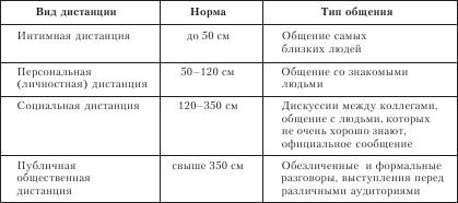 Аллан Пиз в своей книге «Язык телодвижений» пишет, что дистанции одинаковы для человека среднеобеспеченного социального уровня независимо от того, где он проживает: в Северной Америке, Англии или Австралии [7]. Выбор дистанции зависит от взаимоотношений между людьми (люди стоят ближе к тем, кому они симпатизируют), от индивидуальных особенностей человека (так, интроверты плохо переносят слишком близкую дистанцию), от культурных и национальных различий (так, у японцев интимная зона составляет 25 см, а у американцев – до 50 см; американцы считают, что азиаты фамильярны и чрезмерно «давят», азиаты считают, что американцы «холодны и слишком официальны») [7], от плотности населения людей в том месте, где люди выросли (для людей выросших в густонаселенных городах их личное пространство составляет 46 см, а люди из сельской местности и небольших районных городов могут иметь личную зону до 1,2 м [7]. Нарушение оптимальной дистанции общения воспринимается негативно. К проксемическим характеристикам общения относится не только дистанция, но и взаимное расположение людей в пространстве (рис. 7.3.1).