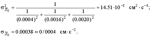 Если же об исходных распределениях нет никаких заслуживающих внимания данных, то на основании центральной предельной теоремы можно все-таки предполагать, что распределение среднего взвешенного нормально, поскольку оно является суммой большого числа случайных величин с конечными дисперсиями и математическими ожиданиями. Пример. Тремя коллективами экспериментаторов с помощью различных методов измерения были получены следующие значения ускорения свободного падения (со среднеквадратическими отклонениями результатов измерений):