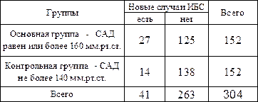Таблица 4. Число новых случаев ишемической болезни сердца (ИБС) в Ленинграде у женщин 40 – 49 лет, в зависимости от величины систолического артериального давления (САД). Источник. Эпидемиология неинфекционных заболеваний под редакцией 1.· Абсолютный риск в основной группе равен:
