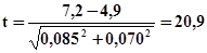 Таблица 6. Число случаев смертей от ишемической болезни сердца и число человеко-лет в сравниваемых группах. Источник: А.Альбом, С Норелл. «Введение в современную эпидемиологию» 1996. 1. Абсолютный риск смерти от ИБС в группе лиц курящих сигареты Абсолютный риск смерти от ИБС в контрольной группе 2. Атрибутивный риск смерти от ИБС, связанный с курением сигарет, составляет: AR=7,2 – 4,9= 2,3 % на 1000 человек в год. Эта величина соответствует добавочной частоте смертей от ИБС связанная с курением сигарет. 3. Относительный риск смерти от ИБС, связанный с курением сигарет равен: 4. Этиологическая доля (снижение относительного риска -СОР): Такова доля смертей от ИБС в группе курильщиков сигарет (от общей суммы ИБС в этой группе), которые могли быть предотвращены, если бы лица, входящие в эту группу не курили. 5. Статистическая оценка гипотезы связи курения сигарет и смерти британских мужчин врачей от ИБС. В данном случае рассчитаем критерий t и, ориентируясь на его величину, определим уровень достоверности различий абсолютного риска для лиц, курящих и некурящих сигареты.