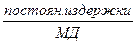 Последовательность проведения маржинального анализаМаржинальный анализ Маржинальный анализ – основан на подразделении затрат на постоянные и переменные и использование на анализе такой экономической категории, как маржинальный доход. маржинальный доход = выручка - переменные затраты или маржинальный доход = прибыль + постоянные затраты 1. рассчитываем маржинальный доход ( МД) 2. рассчитываем коэффициент МД: КМД= 3. рассчитываем уровень безубыточности: а) в натуральном выражении точка безубыточности Уб= общ. кол-во товаров* КМД б) в денежном выражении Уб= Выручка* 4. рассчитываем запас финансовой прочности(в ден.выраж.)= = факт.V пр-ва (выручка) – уровень безубыточности 5. рассчитываем силу операционного рычага = = В том случае, если предприятие производит несколько видов продукции, причем разнородных, то в расчет безубыточности вносятся коррективы, в частности критический V продаж просчитывается: Критич. V продаж = Провести маржинальный анализ: