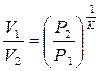 5. Если Р1 и V1 заданные начальные параметры адиабатного процесса, то давление Р в любой точке процесса будет связано с текущим объемом V следующей зависимостью: