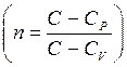 При постоянном значении истинной теплоемкости С величина n будет также постоянной. Т.к. любой термодинамический процесс характеризуется вполне определенным постоянным значением теплоемкости С, то при интегрировании уравнения величину n - можно считать постоянной, что даст нам выражение: