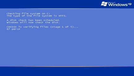 Рис. 19.5. Проверка диска программой Check Disk в процессе загрузки системы