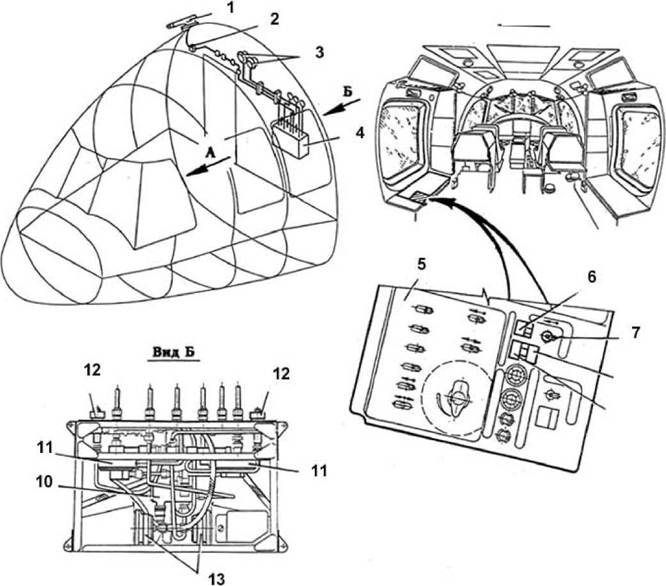 Основные агрегаты системы размещены в отсеке СКВ под полом кабины экипажа с левой стороны, между шпангоутами ЗН и 5Н. Агрегаты подачи воздуха находятся в двигательном отсеке на потолке грузовой кабины в районе шпангоута 5. Магистральные трубопроводы проложены под полом кабин, трубопроводы отбора воздуха -в двигательном отсеке. Управление системой кондиционирования воздуха осуществляется со специального щитка, расположенного на левом пульте бортинженера. Вертолет оборудован системой регулирования давления (СРД), которая обеспечивает автоматическое поддержание требуемого избыточного давления, определяемого величиной постоянного перепада - превышение давления в гермокабине над полным давлением встречного потока воздуха. Полное воздушное давление воспринимается приемником воздушного давления типа ППД-1М (правый приемник). В конструкции системы регулирования давления имеются устройства, не допускающие возникновения обратного перепада давлений и перенаддува гермокабины, т.е. повышения давления в ней более, чем на 850 мм. водяного столба (34 дюйма водяного столба) выше статического давления окружающей среды. Основные технические данные