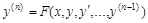 где F – некоторая функция от n+2 переменных. Порядок n старшей производной, входящей в запись дифференциального уравнения называется порядком дифференциального уравнения. Например, Дифференциальное уравнение n-го порядка называется разрешенным относительно старшей производной, если оно имеет вид: