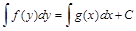 называется уравнением с разделенными переменными. Метод решения данного вида уравнений состоит в интегрировании их левой и правой частей по соответствующим переменным:
