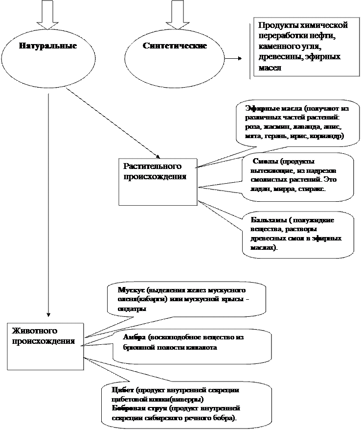 Душистые вещества -это большая группа индивидуальных органических соединений или их смесей, обладающих приятным запахом. В парфюмерном производстве они делятся на 2 группы: 1. натуральные: · растительного происхождения; · животного происхождения; 2. синтетические.