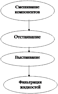 Технология составления парфюмерных жидкостей является достаточно простой, наиболее сложным является процесс создания аромата и составления парфюмерной композиции. Во всех случаях композиция духов составляет тайну фирмы – изготовителя.!!! Для приготовления парфюмерных жидкостей используют только этиловый спирт высшей степени очистки. Все компоненты композиции перемешивают и выстаивают в баках из нержавеющей стали или эмалированных, обычно объемом от 100 л до 16 тыс. л. Процесс выстаивания и «созревания» запаха длится от нескольких дней до трех месяцев. При выстаивании и отстаивании парфюмерной композиции происходит физико-химический процесс взаимодействия компонентов со спиртом и между собой. Вещества грубо - дисперсные или коллоидные оседают на дно, и жидкость осветляется. По завершении процесса жидкость фильтруют, разливают по флаконам, укупоривают, этикетируют и упаковывают в футляры. Следует отметить, что сухие духи «саше», используемые обычно для ароматизации белья, одежды готовят в той же композиции, но вместо спирта и воды применяют волокна крахмала и тальк, в качестве порошка носителя используют целлюлозу, лепестки розы или измельченный в порошок корня ириса или фиалки.