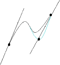 Відмітна риса кривих 3-го порядку в тім, що вони можуть мати крапку перегину. Криві 3-го порядку добре відповідають лініям, спостережуваним у природі, тому як основні об'єкти векторної графіки використають саме такі лінії. Відповідно криві 2-го порядку - окремий випадок кривих 3-го порядку. Загальне рівняння кривій 3-го порядку: x3 + a1 y3 + a2 x2 y + a3 x y2 + a4x2 + a5 y2 + a6 x y + a7 x + a8 y + a9 = 0 Нескінченна крива 3-го порядку має 9 параметрів. Відрізок - 11 параметрів. Для спрощення векторних редакторів використають не будь-які криві 3-го порядку, а їхній особливий вид, називаний кривими Безье. На початку 70-х років професор Пьер Безье, проектуючи на комп'ютері корпуса автомобілів “Reno”, уперше застосував для цієї мети особливий вид кривих, описуваних рівнянням 3-го порядку, які згодом стали відомими за назвою криві Безье (функція Bezier). У цей час криві Безье присутні в будь-якому графічному пакеті. Досить сказати, що всі комп'ютерні шрифти складаються із кривих Безье. Криві Безье також знаходять широке застосування й у растровій графіці. Так, у програмі Photoshop використається термін контур (path), що базується на кривих Безье. Саме за допомогою цього інструмента ви можете виділити на сканованій фотографії потрібний об'єкт (наприклад, для його вирізання), що буде використаний при створенні фотомонтажу. Поява кривих Безье викликало дійсний переворот у відео й тривимірній графіці. Це пов'язане з тим, що до появи кривих Безье контури комп'ютерних персонажів були ламаними, поверхні - гранованими, а рух - переривчастим, стрибкоподібним, неприродним. Використання кривих Безье дозволило реалізувати найбільш загальний й інтуїтивно зрозумілий спосіб керування рухом. Відповідно до його параметрам кривої можна поставити у відповідність параметри руху комп'ютерного персонажа. У результаті рух буде відбуватися по тимі ж, розглянутим нами правилам. Таким чином, знаменита крива використається не тільки у двомірній комп'ютерній графіці, але й у тривимірній графіці, відео, анімації. Відрізки кривих Безье - окремі випадки відрізків кривих 3-го порядку й вони описуються не 11 параметрами, а тільки 8, тому працювати з ними зручніше. Метод побудови кривій Безье заснований на використанні пари дотичних, проведених до лінії до крапок її кінців. На форму лінії впливає не тільки кут нахилу дотичній, але й довжина її відрізка, значеннями яких яких можна управляти в інтерактивному режимі шляхом перетаскування їхніх кінцевих крапок. Таким чином, дотичні виконують ролі функції віртуальних важелів, що дозволяють управляти формою кривої.