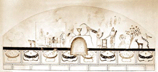 Антична цивілізація залишила на берегах Причорномор’я чимало унікальних пам’ятників, серед яких особливе місце займають похоронні склепи, прикрашені фрескової живописцю. Один з подібних склепів і був знайдений в 1891 році. У Причорномор’я давньогрецькі писані похоронні склепи дуже рідкі. Виключення становить столиця Боспору (сучасна Керч), де їх було знайдено близько двох десятків. 6 серпня 1891 г. тут був відкритий писаний склеп (саме тому в багатьох джерелах він названий «Склеп 1891 року»). Дослідження за дорученням Імператорської Археологічної Комісії проводив Ю. А. Кулаковський. Склеп перебував у найближчому сусідстві із гробницею Анфестерія. Після опису й зняття малюнків п. Васильєвою вхід був знову засипаний. Входом у склеп служить глибокий колодязь. Вхід у склеп був завалений великою й товстою кам'яною плитою. Похоронна камера висічена в глині й перекрита напівциліндричним зводом. При відкритті склеп знайдений був розграбованим, імовірно, через пробоїну в східній його стіні, через яку склеп, мабуть, відвідувався неодноразово; через неї ж досліджували його археологи. Одна із трун стояла, імовірно, на двох каменях, знайдених близько східної стіни в глибині камери. Основне зображення перебуває в люнеті на південній стіні напроти входу. Це цикл зображень, пов'язаний із загробним світом. Тут є стіна жертвопринесення – чоловік і жінка у вівтаря. Далі зображене дерево, по сторонах від нього танцююча жінка й олень, птах на гілці. Стіна виїзду вершників розміщена вище. Два павичі п’ють із вази. Ця декоративна сцена розміщена в центрі люнети. Увесь розпис зроблений по дуже тонкому шару штукатурки, імовірно, клейовими фарбами. Контури фігур спочатку наносилися на штукатурку гострим знаряддям, потім позначалися товстими одноколірними лініями, після чого дана фігура або частина її заповнювалася суцільною фарбою. Робота груба й варварська, але за нею видна стара школа й тонка майстерність. Живопис склепу носить умовний, ієратичний характер, фігури зображені в нерухливих, строго фронтальних позах, трактовані плоскісно, живопис строго підкорена архітектурі склепу. Гробниця перебувала на пустирі. Завдяки сприянню керченського жителя Цибульського в 1908 р. гробниця надійшла у власність Імператорської Археологічної Комісії, потім під відомство Керченського Музею.