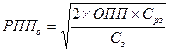 де РППо – оптимальний середній розмір партії поставки ТМЦ; ОПП – обсяг виробничого споживання ТМЦ; Срз – середня вартість розміщення одного замовлення; Сз – вартість зберігання одиниці товару у даному періоді. Оптимальний середній розмір виробничого запасу