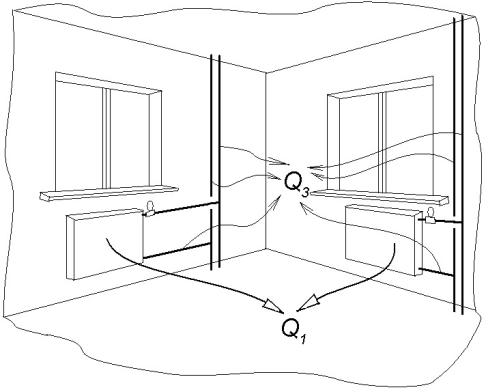 Схема розподілу теплових потоків в опалюваному приміщенні