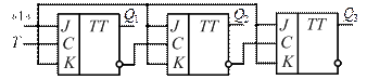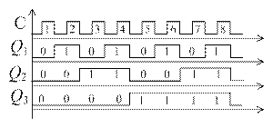 Лічильник, що підсумовує на 3 розряди наведений на рисунку 2, а його часова діаграма на рис. 3.