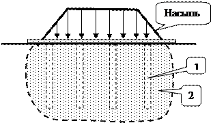 Слід зазначити, що для зв'язкових водонасичених грунтів подібні палі можуть виготовлятися методом віброштампованія (пневмопробійників) і заповнюватися щебенево-піщаної сумішшю з додаванням цементу. в) метод ущільнення додатком навантаження Глибинний процес ущільнення основи відбувається і при додатку нии до нього ущільнюючої навантаження (у вигляді відсипаної насипу) (рис 8).