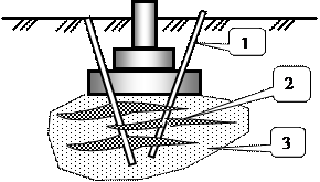 г) метод ущільнення пониженням рівня грунтових вод Відомо, що грунт розташований нижче рівня грунтових вод (У.Г.В.) відчуває зважувальні дію води, яка проявляється у вигляді зниження величини питомої ваги грунту. При штучному водопій-Ніжені, грунт виявляється вище У.Г.В., що призводить до збільшення питомої ваги ного грунту і, як наслідок, до ущільнення підстави. Слід враховувати і негативні наслідки цього явища, коли разом з ущільненням основи отримують додаткові опади і розташовані на даній території споруди. д) метод ущільнення вибухами Застосування даного методу ефективно при освоєнні нових (не забудованих) територій. Вибухами ущільнюються великі обсяги грунту, з використанням попередньо пробурених шпурів, в які поміщаються вибухові речовини (В.В.). Використання В.В. вимагає особливого підходу до вирішення поставлених інженерних задач і пов'язане з підвищеним ризиком в період проведення підривних робіт. Метод ущільнення грунтових основ вибухами знаходить застосування в гідротехнічному будівництві. е) метод ущільнення замочуванням Даний метод має обмежене застосування і використовується лише для лесових основ (див. механіку грунтів). Попереднє замочування лесових підстав руйнує структуру лесу і викликає його просідання під дією власної ваги, тобто відбувається процес ущільнення. Ущільнення грунтів основ на використовуваних або забудованих територіях часто важко, в цьому випадку вдаються до закріплення грунтів.