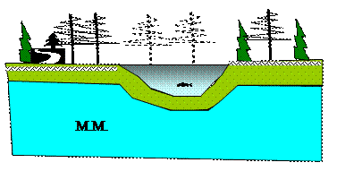 Утворення «термокарста». Термокарст утворюється в результаті відтавання М.М. і осідання грунту. У більшості випадків цьому сприяє місцеві пожежі. Згодом такий термокарст часто заповнюється водою, утворюючи «термокарстових озера».