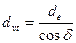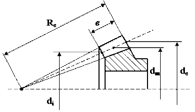 Re – внешнее конусное расстояние; di – диаметр внутренней делительной окружности; dm – диаметр средней делительной окружности; de – диаметр внешней делительной окружности. В конических передачах нагрузка по длине зубьев распределяется неравномерно. При нагружении передачи происходит поворот колес, определяемый податливостью зубьев. Упругие смещения в разных сечениях зубьев неодинаковы, а пропорциональны расстоянию от оси колес или от общей вершины конусов. Но удельная жесткость геометрически подобных зубьев не зависит от их линейных размеров (модуля), т.к. увеличение плеч нагрузки компенсируется увеличением высоты сечения зубьев. Поэтому принимают, что удельная нагрузка распределяется по длине прямых и косых зубьев конических колес пропорционально упругим смещениям, т.е. по закону треугольника, вершина которого совпадает с вершиной делительного конуса, и что напряжения изгиба одинаковы по всей длине зуба. Это позволяет вести расчет по любому из сечения.