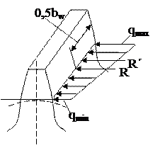 Точка приложения равнодействующей нагрузки смещена от середины длины зуба к нижнему торцу зубчатых колес. Однако расчет ведут по среднему сечению, что несколько увеличивает запас прочности.