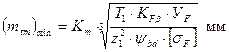 mnm – средний нормальный модуль; Кm = 1 – с тангенсиальными зубьями и т.д.