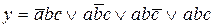 Користуючись таблицею істинності, запишемо логічне рівняння для вихідний змінної у вигляді ДДНФ: