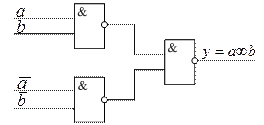Рисунок 5 - Схема для реалізації функції виключне АБО Крім цих розглянутих і досить розповсюджених елементів, на практиці знаходять використання також елементи рівнозначності, нерівнозначності і імплікації.