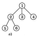 Мал.23 Для подальшого пошуку перейдемо до однієї з нових вершин, які ми побачили. Це вершини 2, 3 і 4. У нашій послідовності (мал. 3, б) першою записана вершина 2, тому й перейдемо до неї. Які вершини ми бачимо з вершини 2 (мал. 1, а)? Це верши-ни 1, 3, 5 і 6. Цю саму інформацію можна отримати з другого рядка таблиці суміжності (мал. 1,6). Однак лише вершини 5 і 6 є новими, а вершини 1 і 3 ми вже бачили на попередніх кроках нашого алгоритму. Доповнимо дерево пошуку (мал. 4, а), по-слідовність переглянутих і «видимих» вершин (мал. 4, б) та множину (мал. 4, в) новою інформацією.