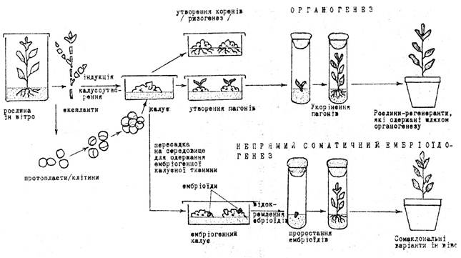 Рис. 1. Схематичне зображення місця і ролі калусної тканини