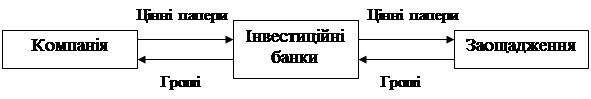Схема 1. Пряме (безпосереднє) переміщення (трансферт). Безпосереднє переміщення грошей та цінних паперів, як показано у верхній частині діаграми, відбувається, коли компанія передає свої акції або облігації безпосередньо власникам грошових коштів без посередництва будь-яких фінансових інститутів.