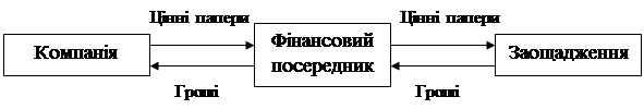 Схема 3. Непряме переміщення (трансфер) з використанням фінансового посередника Переміщення (трансфер) капіталу також може здійснюватись за допомогою "фінансового посередника". Спочатку посередник купує грошові кошти у тих, хто має заощадження, в обмін на свої власні цінні папери, а потім використовує ці грошові кошти для придбання і збереження цінних паперів компанії. Наприклад, той, хто має заощадження, може дати банку певну суму в доларах, одержуючи замість того від нього депозитний сертифікат, а потім банк зміг би позичити гроші якій-небудь малій компанії у вигляді позики під нерухомість. Отже, фінансові посередники засновують нові форми капіталу, в даному випадку, депозитні сертифікати, які й надійніші, й більш ліквідні за заставні (іпотеки). Тому вони і є більш якісними цінними паперами, що зберігаються більшістю осіб із заощадженнями. Наявність фінансових посередників значно збільшує ефективність ринків короткотермінового і довготермінового позикового капіталу. В Україні фінансові послуги надаються фінансовими установами, а також, якщо це прямо передбачено законом, фізичними особами суб'єктами підприємницької діяльності (далі – суб'єкти підприємницької діяльності). У Законі "Про фінансові послуги та державне регулювання ринків фінансових послуг" визначено поняття фінансової та кредитної установи. Фінансова установа – юридична особа, яка відповідно до закону надає одну чи декілька фінансових послуг та яка внесена до відповідного реєстру у порядку, встановленому законом. До фінансових установ належать банки, кредитні спілки, ломбарди, лізингові компанії, довірчі товариства, страхові компанії, установи накопичувального пенсійного забезпечення, інвестиційні фонди і компанії та інші юридичні особи, виключним видом діяльності яких є надання фінансових послуг. Кредитна установа – фінансова установа, яка відповідно до закону має право за рахунок залучених коштів надавати фінансові кредити на власний ризик. Можливість та порядок надання окремих фінансових послуг юридичними особами, які за своїм правовим статусом не є фінансовими установами, визначаються законами та нормативно-правовими актами державних органів, що здійснюють регулювання діяльності фінансових установ та ринків фінансових послуг, виданими в межах їх компетенції. При укладенні договору юридична або фізична особа мають право вимагати у суб'єкта підприємницької діяльності надання балансу або довідки про фінансове становище, підтверджені аудитором (аудиторською фірмою), а також бізнес-план, якщо інше не передбачено законодавством України.