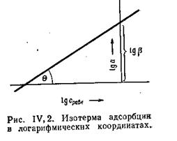 1. Поняття про адсорбцію. Адсорбцією називається концентрування газоподібної або розчиненої речовини на поверхні розділу фаз. Газ або розчинену речовину прийнято називати в цьому випадку адсорбтивом, а рідина або тверде тіло, що адсорбувало їх, — адсорбентом. Адсорбцію газів вугіллям спостерігав ще в XVIII в. Шеєле. На явище адсорбції речовин з розчину вперше звернув увагу в 1785 р. російський академік Т. Е. Ловіц. Французький учений Соссюр в 1814 р. знайшов, що всі пористі тіла, тобто тіла з великою поверхнею, здатні адсорбувати гази і що при цьому зазвичай виділяється тепло. Соссюр зробив також дуже важливе спостереження, що адсорбція йде тим краще, чим легше зріджується газ. В кінці XIX в. Гіббс розробив загальну термодинамічну теорію адсорбції. У XX в. явище адсорбції детально досліджували Ленгмюр, Поляні, Брунауер, Де Бур. Розрізняють фізичну, або ван-дер-ваальсовуадсорбцію і хімічну адсорбцію, або хемосорбцію. У першому випадку адсорбційні сили мають ту ж природу, що і міжмолекулярні, або ван-дер-ваальсові, сили. Фізична адсорбція завжди зворотня. При хімічній адсорбції адсорбційні сили мають хімічну природу. Хемосорбція зазвичай незворотня. Фізична адсорбція протікає мимоволі. Адсорбтив прагне зайняти всю поверхню адсорбенту, але цьому перешкоджає процес, зворотній адсорбції — десорбція, викликана, як і дифузія, прагненням до рівномірного розподілу речовини унаслідок теплового руху. Для кожної концентрації адсорбтива в навколишньому середовищу існує стан адсорбційної рівноваги, аналогічний рівновазі між конденсацією і випаровуванням. Зрозуміло, що чим вище концентрація адсорбтива, тим більше адсорбція. Також ясно, що чим вище температура, тим менше фізична адсорбція. Для кожної температури також існує свій стан рівноваги. Вплив температури на фізичну адсорбцію цілком узгоджується зпринципом ЛеШателье — Брауна, оскільки десорбція як процес, зворотний адсорбції, супроводжується поглинанням тепла. Для визначення кількості адсорбованої речовини необхідно експериментально знайти тиск газу або концентрацію адсорбтива в судині, в якій відбувається адсорбція, до і після адсорбції. Дуже часто кількість адсорбованої речовини визначають по збільшенню ваги адсорбенту. Слід відмітити, що визначення кількості адсорбованої речовини викликає часто великі труднощі, що завжди мають місце, коли мала величина є різницею двох великих. Аби зменшити помилку вимірювань, визначення зазвичай проводять, застосовуючи як адсорбент пористі тіла з великою питомою поверхнею, що зв'язують велику кількість адсорбтива. Проте це у свою чергу має той недолік, що на адсорбції може позначатися діаметр пір адсорбенту. Порівняно великі молекули адсорбтива не зможуть проникати у вузькі капіляри адсорбенту і досягнута межа адсорбції буде фіктивною величиною, що не характеризує адсорбційну взаємодію адсорбтива з адсорбентом. При малих радіусах пір може відбуватися зріджування адсорбтива (капілярна конденсація) і отримують завищені значення кількості адсорбованої речовини. Кількісно адсорбція може бути виражена з допомогою декількох величин: 1. Величиною а, що є кількістю адсорбтива, що знаходиться в одиниці маси адсорбенту. Цю величину зазвичай вимірюють у моль/г. 2. Величиною α, що показує кількість адсорбованої речовини, що доводиться на одиницю 