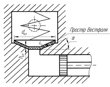 При відкриванні вихідного клапана частина рідини заповнює простір Вестфаля (рис.3.13), а потім вже поступає на вихід насоса. Виходячи з рівняння нерозривності потоку можна записати наступний вираз