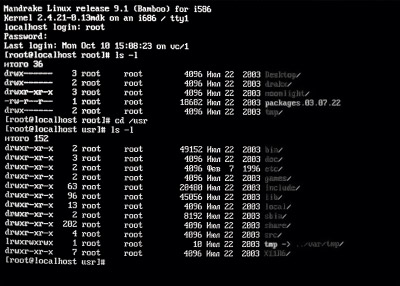 Рис. 2.8. Текстовий режим в ОС Linux. Потім з'явилися карти із графічними можливостями. У зв'язку з малим розміром адресного простору (1 Мб) процесора Intel 8086 доводилося відображати тільки частина відеопам'яті в адресний простір процесора й спеціальних команд задавати, яка саме це частина. Така технологія одержала назву bank switching. Команди відеокарті посилали шляхом переривань або запису інформації безпосередньо в її апаратний порт. Для використання додаткових можливостей відеокарт розроблювачам прикладних програм і ігор доводилося самим реалізовувати найпростіші операції для кожного їхнього типу, тому що підтримка відеокарт із боку ОС 15) була мінімальною. З появою ОС із графічним інтерфейсом ситуація змінилася. Прошарок між прикладною програмою й апаратурою став "товще". Безпосередньо на низькому рівні відеокартою управляє її драйвер - програма, що поставляється, як правило, самою фірмою-розроблювачем відеокарти. А прикладна програма звертається до нього через виклики чітко певного загального для всіх драйверів абстрактного інтерфейсу (англ. API - Application Programming Interface). Таким чином, з'явилася апаратна незалежність, що явилося важливим кроком уперед, з обліком безлічі відеокарт із обмеженою сумісністю один з одним.