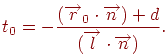 звідки легко визначити, що промінь перетинає площина в крапці зі значенням