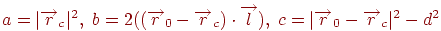 Підставивши сюди координати лучачи з рівняння (4.9), одержимо, що параметр, при якому промінь перетинає сферу, повинен задовольняти квадратному рівнянню